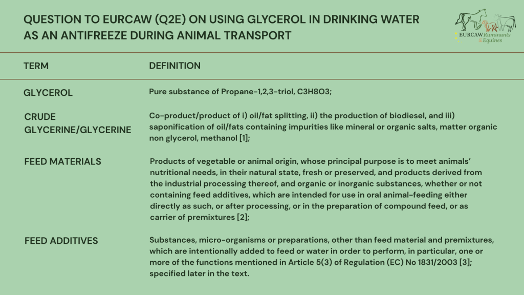 New ‘Question to EURCAW’ (Q2E) response on using glycerol in drinking water as an antifreeze during animal transport